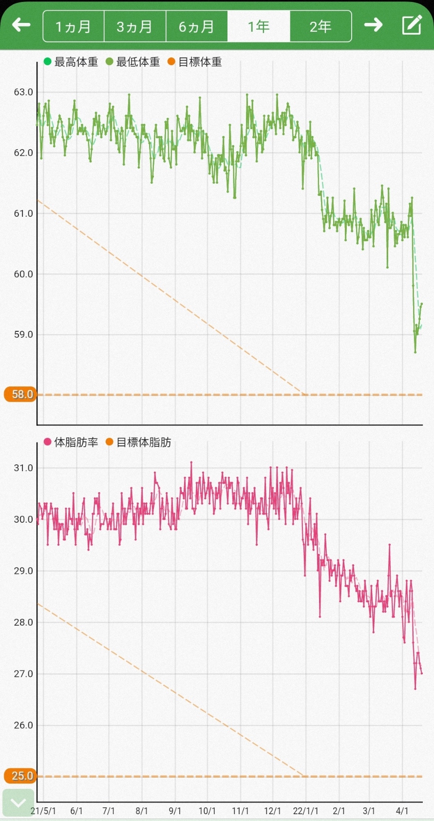まず、あれほど減らなかった体脂肪率が下がり始め、夜の寝つきもすっかり良くなったではないですか!