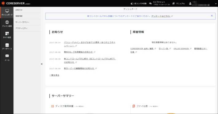 試したのはコアサーバー