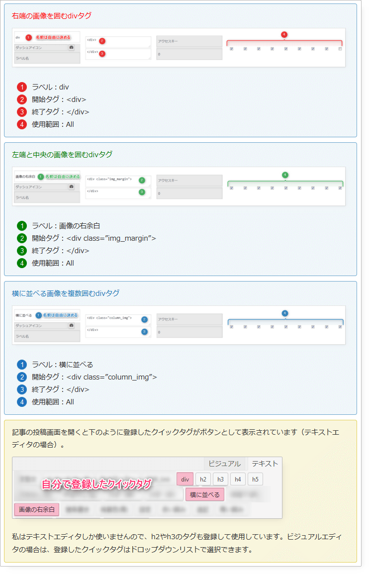 プラグイン「AddQuicktag」の登録方法を追加したんですが、我ながらよく頑張った!と思います。