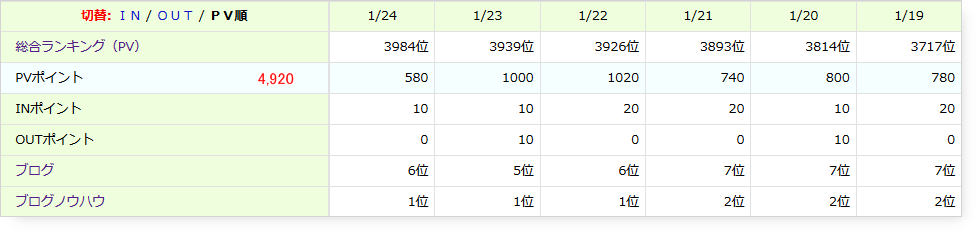 今年4回目のブログ村PVポイント報告です^^