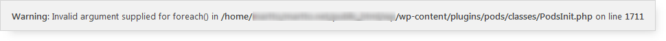 PodsInit.phpの1711行目のforeach()に無効な引数が指定されています。
