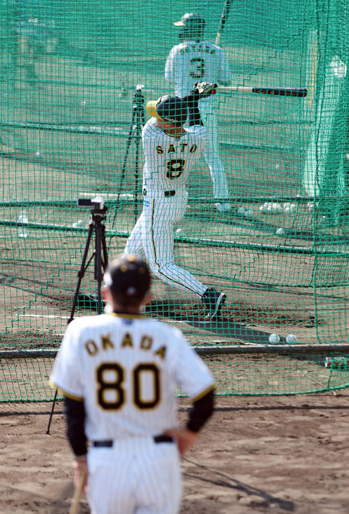(佐藤輝と話し)「やる気満々よ! 下半身鍛えたら守備もよくなる、打撃もよくなる、走塁もよくなる。目指せ3割30本30盗塁目指せ~! 言うて」