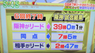 今日はナゴヤドームで中日戦一昨日の傷も癒えない中、今日のすまたんでは、こんなデータをもとに下柳さんが語っていました。阪神が勝ちたければ6回までにリードしろ!日曜日の試合も、8回裏まで8-5で負けていました。そして運命の9回表1番北條 内野安...